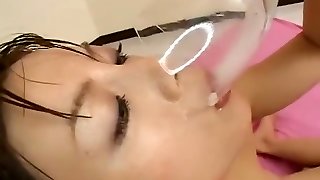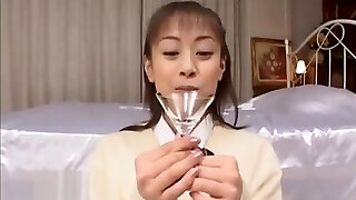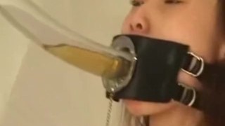 Chinese cutie drinking cum through a funnel