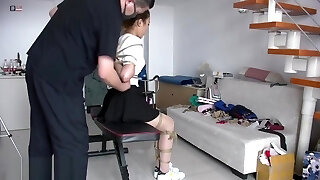 Amateur Asian teenie is roped up by her master real tight