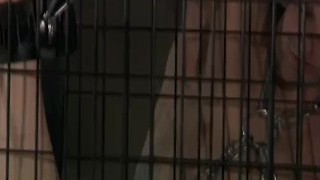 Lusty brunette loves being encaged and bound in the dungeon