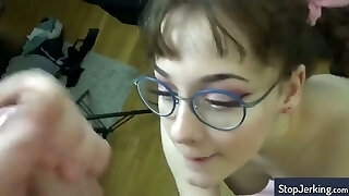 She likes this submissive young lady to give my jizm to her face