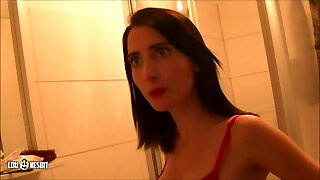 Hairless pussy brunette Viola Weber rides a stranger in front of her Boyfriend