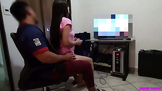 My Best Friend asked me to sit on his legs and I feel how the Hard Cock Massages my Donk