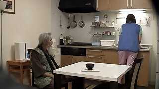 German old Granny Erika 73 entice to Smash in kitchen by Young Guy