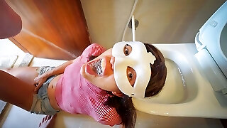 Human toilet girl gets her face soaked with pee over the toilet