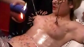 Burning the submissive girl chest and nipples - Extinguishing cigarette on her vulnerable flesh
