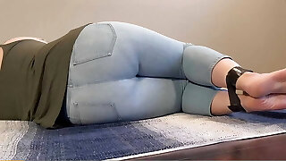 Tied up Chick Can't Hold it Anymore Pees in Light Jeans