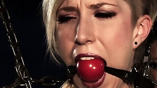 BDSM facefuck ends up with intense cumshot for redhead submissive