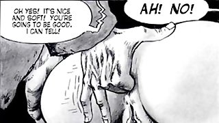 Maid gasping on wrist monstrous cock, very perverted comic art hardcore
