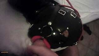 Bound and hooded damsel taking big cock in her mouth – oral creampie