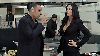 Impressive whorish housewife Dee Williams punishes 2 young studs with hot fuck