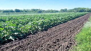 A slender brown-haired saw a area in which large zucchini get bigger, she was not at a loss and plucked a few pieces