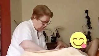 Massage Grandmother Takes Care Of Cock Cropped Cumshot At 1:54