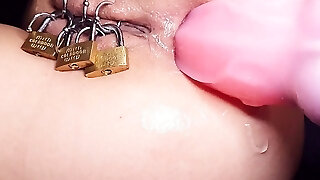 Fisting of Anal when Encaged Pierced Pussy Closed by Padlock