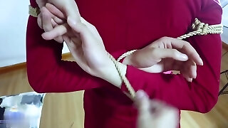 Slim submissive Japanese gal Mika Shindo is ready for restrain bondage and Dp