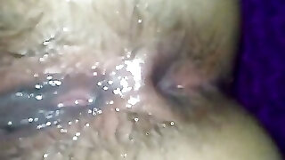 Fucking wife's bush POV at motel bedroom after disco party until creampie her hairy snatch with thick sperm