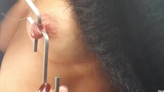 nippleringlover hooks stretching huge nipple piercing outdoors - pierced pussy & tits