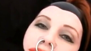 Pissed in face: punk damsel gets piss in piercing mouth - outdoor!