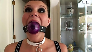 Handcuffed babe is mouthfucked and nailed rear end quite hardcore tonight