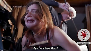 Tied up towheaded Jerusha Ross moans while getting spanked hard