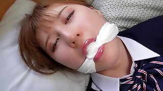 Brown-haired In Purple Gets Roped, Mouth-stuffed, Mouth