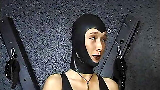Cute restrain bondage slave screaming when getting tortured in BDSM