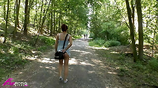 My PUBLIC park undressing! Petite, super-cute teen with small tits almost got caught doing striptease!