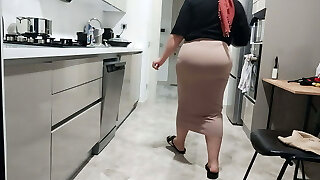 Housewife in pantyhose in the kitchen. Nude maid gets an orgasm while cooking. c3 Tryst