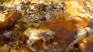 Pissing on a beach shell close up