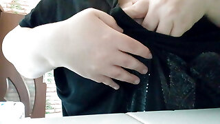 Rubbing my diminutive tits